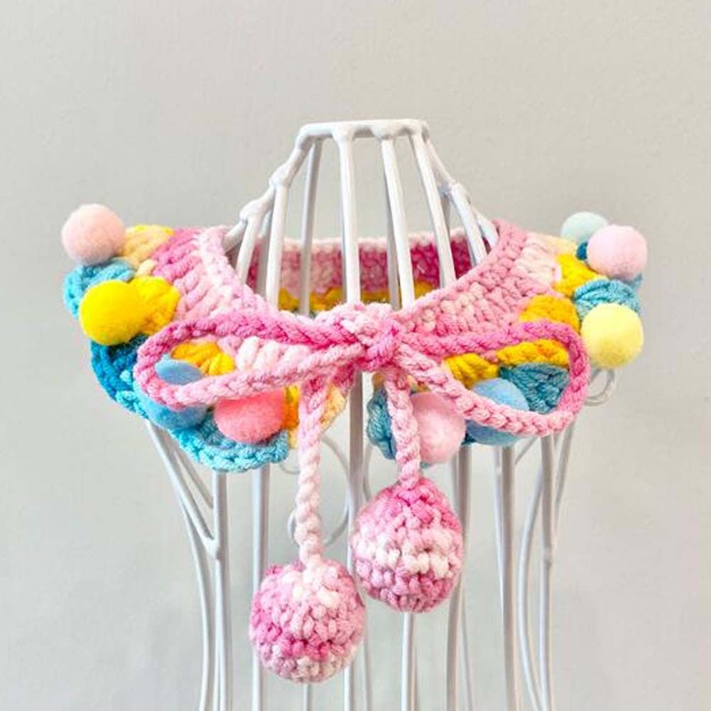 Pink Blue Yellow Cat Dog Collar Handmade Knitted Necklace Collar Rabbit Teddy Bichon Pet Crochet Scarf Bib