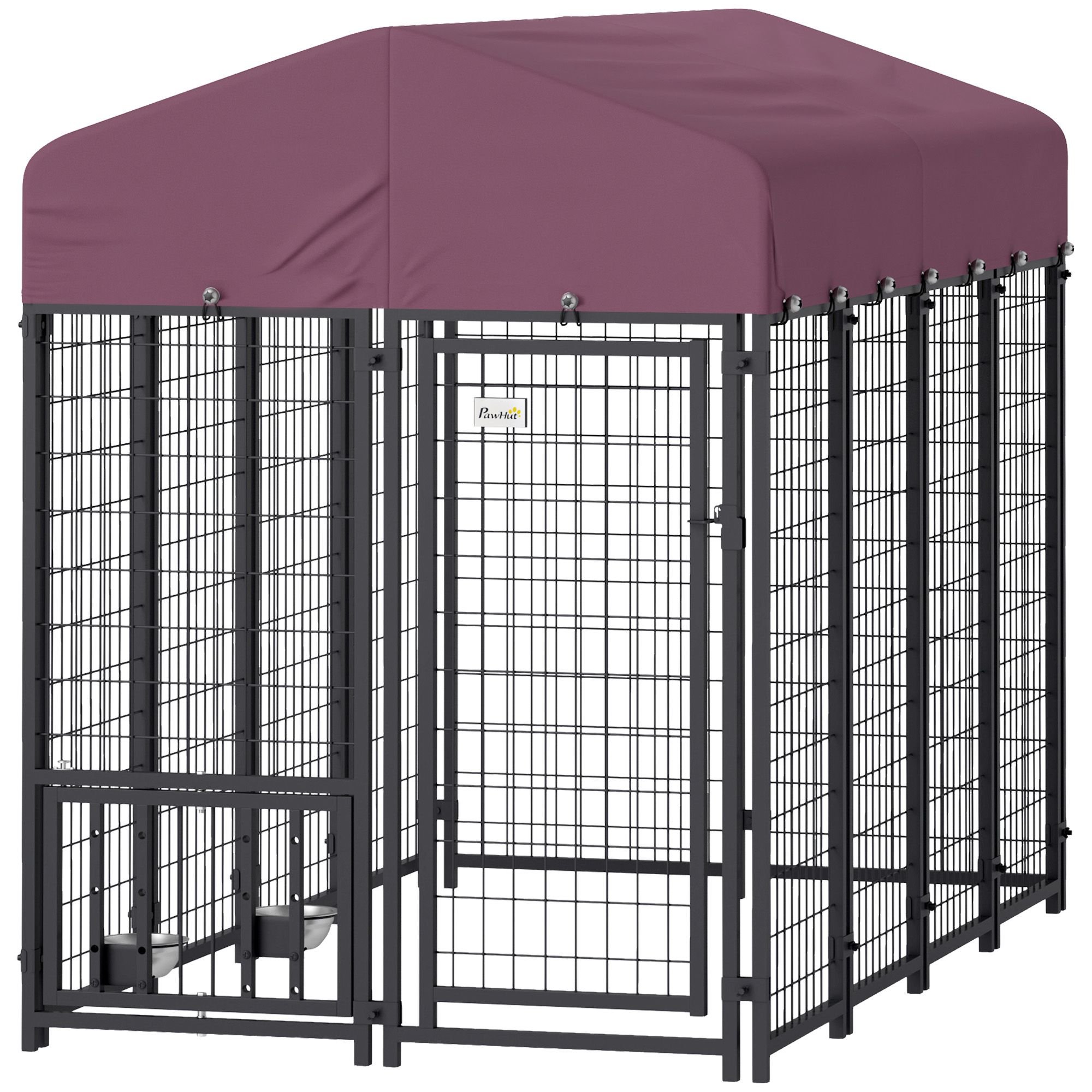Home > PawHut Welded Wire Outdoor Dog Kennel with 360° Rotating & 4 Levels Adjustable Bowls, Waterproof Cover, 7.9' x 4' x 6'