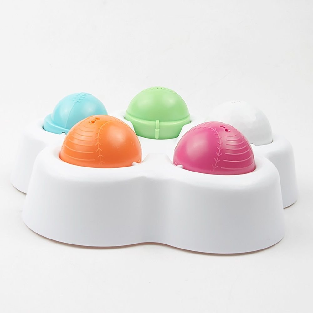 3.Dog food toy has 5 treat compartments balls, will keep your dog busy while teaching them problem-solving skills. Dog feeder makes the puppy need to work for food and get rid of laziness.