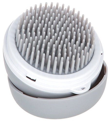 The Pet Life ® 'Bravel' 3-in-1 Travel Pocketed Dual Grooming Brush and Pet Comb opens and connects closed like a clam-shell. Features a Dual-Sided Soft and Tougher Comb designed to tackle all hair type conditions while traveling. The Softer bristles are also great when lathering while bathing and the harder bristles are great when brushing and smoothening hair while removing tangles. Features a third mini handle-held fine-tooth comb that pops-out of the interior shell that great for further smoothing hair. Lightweight, Small and Compact and perfect for on-the-go travel and fits right into your pocket or purse. Available in Multiple Colors.